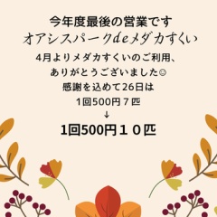 オアシスパークdeメダカすくいは昨日で営業終了しました