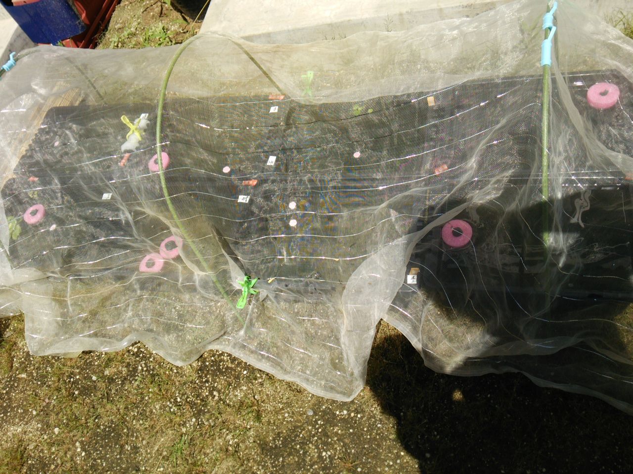 規模の小さな我が家ではヤゴ避けに農業用の虫除けを張ってます。