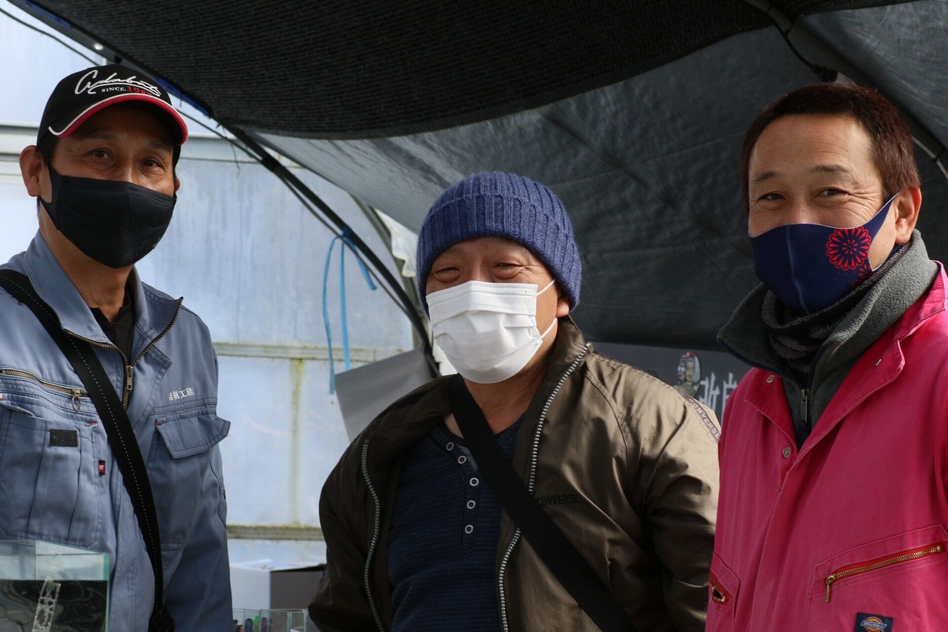 真ん中に華大さん 左がわかぎめだかさんと飼育を主に手掛ける方です。