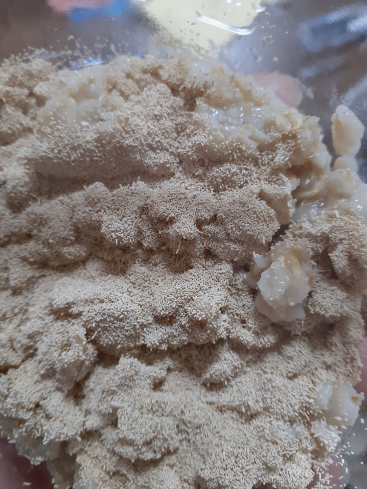 できた柔らかいオートミールにドライイースト振りかけて混ぜまぜしたら出来上がりー
