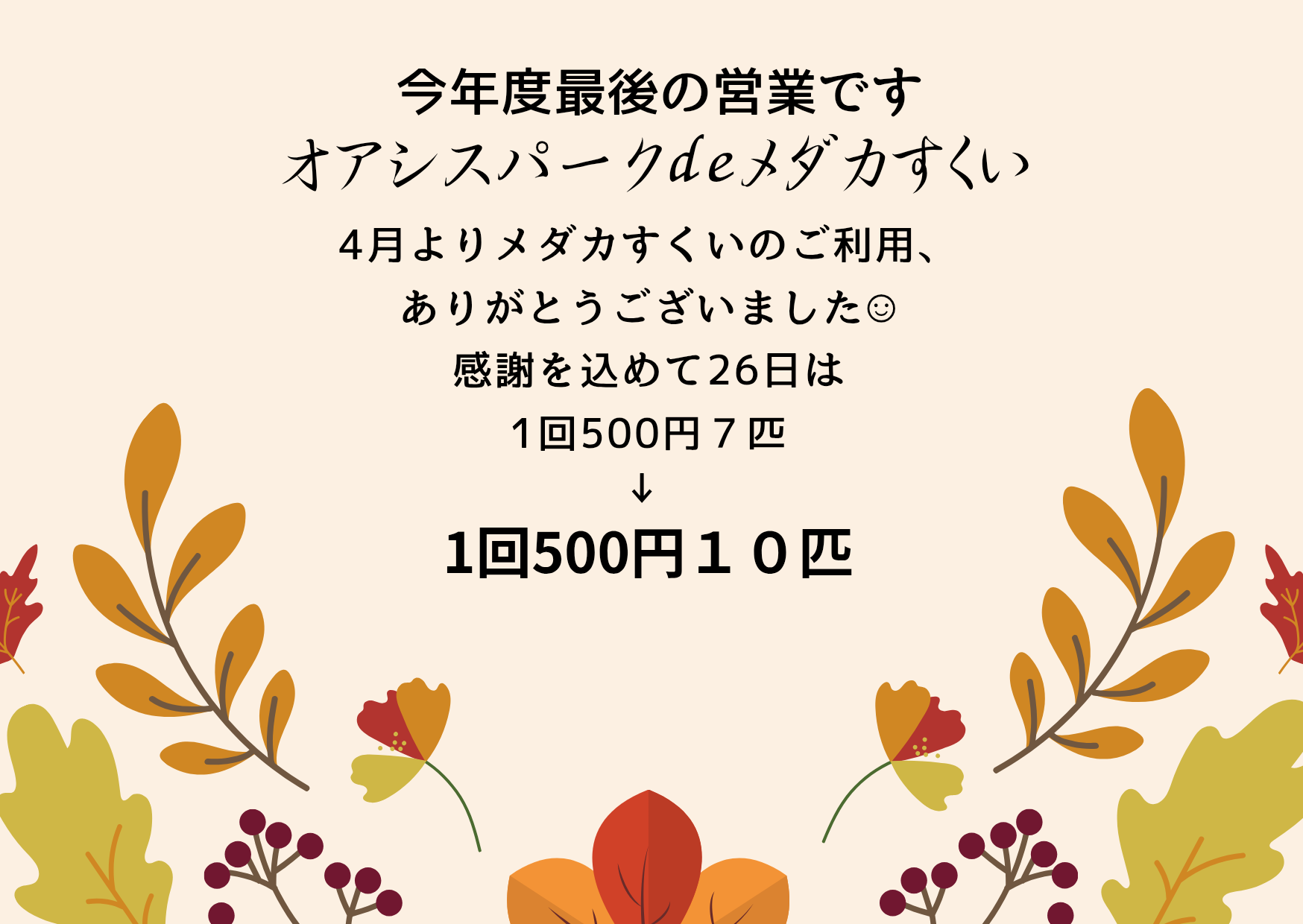 メダカのセット販売も今年度多くの方がお迎えしていただいた魚をピックアップして500円の